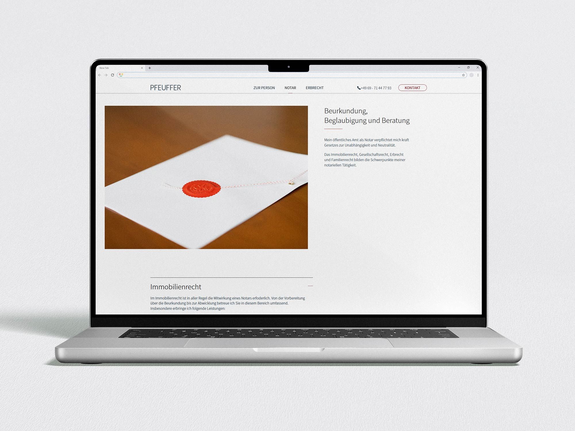 Im Fokus stand ein ruhiger und strukturierter Auftritt, der Vertrauen schafft und die Kompetenz der Kanzlei sichtbar macht. Die Gestaltung sollte bewusst zurückhaltend sein und gleichzeitig eine klare Orientierung für Mandanten bieten.