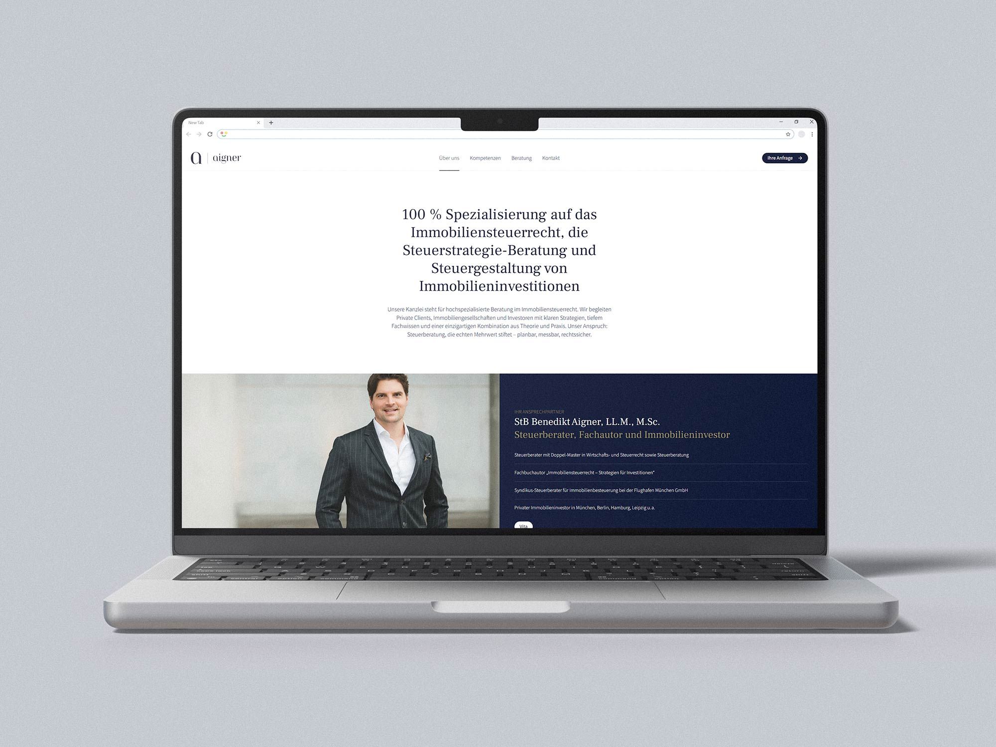 Für die Kanzlei Aigner wurde ein neuer Webauftritt geschaffen, der die Kanzlei klar, verständlich und zeitgemäß präsentiert. Als Steuerkanzlei mit persönlichem Beratungsanspruch war es wichtig, Inhalte nicht nur fachlich korrekt, sondern auch zugänglich und übersichtlich darzustellen.